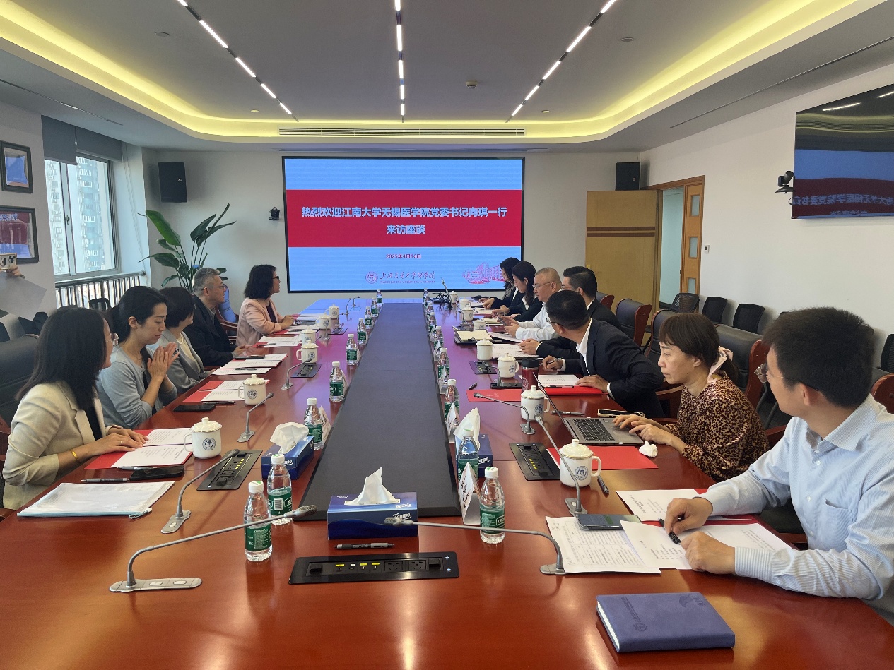 2025年4月16日,ok138cn太阳集团529党委书记向琪、执行院长孙宁一行赴上海交通大学医学院学习调研,深化推进双方合作,院党委副书记、副院长包羽,副院长代卉等相关同志陪同调研。上海交通大学医学院党委副书记、副院长吴正一,院长办公室、科技处、发展规划处、教务处、研究生院、医管处、发展联络处等相关职能部处负责同志参加调研。座谈会由院长办公室主任彭树涛主持。