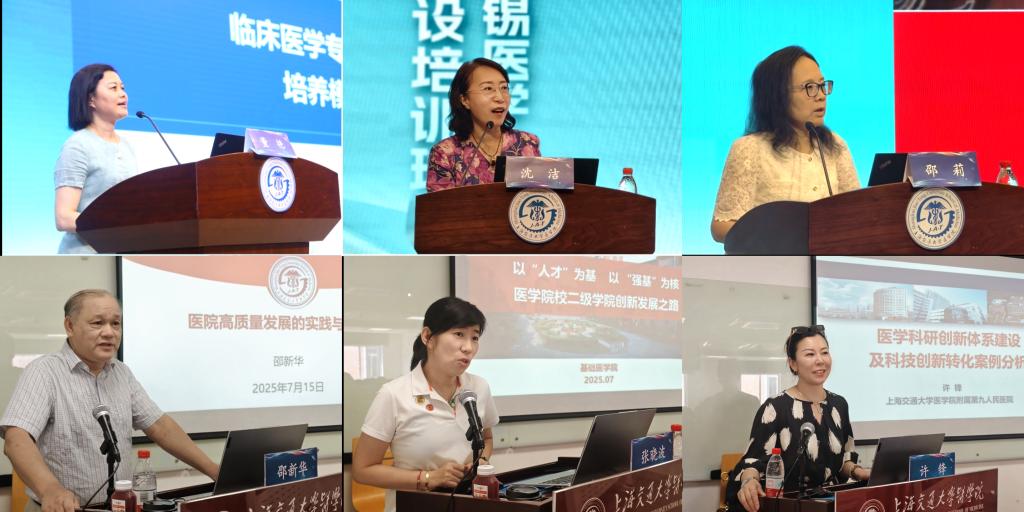 本次培训特邀上海交通大学医学院多位资深管理专家开展专题授课。上海交通大学研究生院医学院分院常务副院长董艳系统解析临床医学专业学位博士研究生培养模式构建与实践;交大医学院学科规划处处长沈洁深入阐述健康中国视域下一流医学院校的学科建设及附属医院战略管理;交大医学院教务处处长邵莉全面介绍了临床医学院建设及新医科人才培养体系的探索;交大医学院医管处处长邵新华重点分享了医院高质量发展的实践与成效;交大基础医学院党委副书记张晓波详细解读了二级学院创新发展实践路径;交大医学院附属第九人民医院学科规划和成果转化处处长许锋结合典型案例分析医学科研创新体系构建及医学科技创新转化;交大医学院解生系教授沃雁前瞻性探讨AI赋能医学教育融合发展。全体学员围绕临床科研和教学、研究生管理和规范化培训、临床医学生就业和临床师资聘任等相关议题进行了研讨和交流。