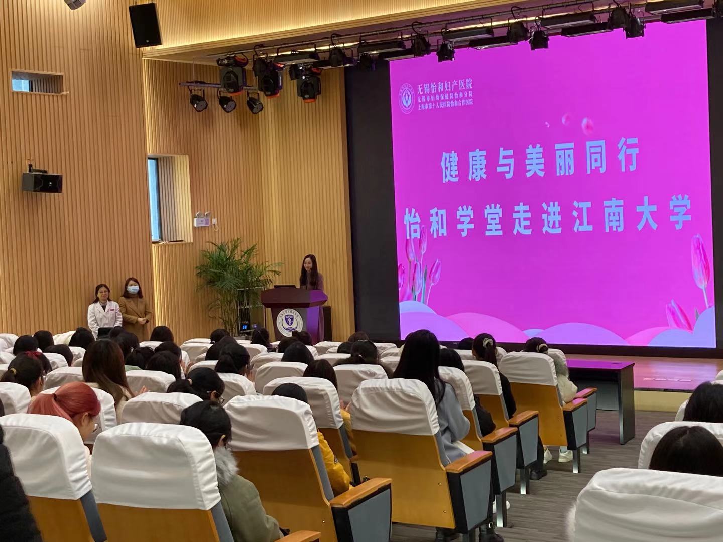 在主持人简单介绍本次活动主题和医院概况之后,无锡怡和妇产医院妇产科副主任医师谢彦老师首先为大家进行了《认识“妇科炎症”,开启美丽人生》的授课。谢老师通过专业的知识背景、精心制作的课件为大家介绍了常见的妇科炎症以及治疗和预防措施,让同学们对这一类疾病有了更好的认识和了解。