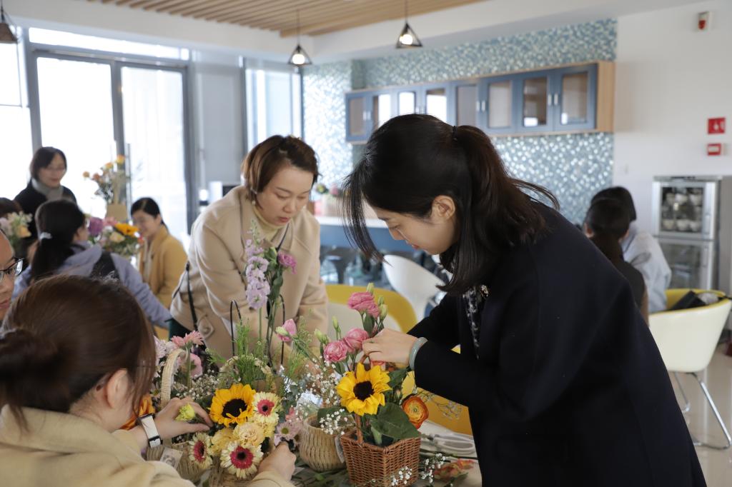 插花活动陶冶了广大教师的情操,在彼此的沟通交流中加深了感情,让大家度过一个温馨而有意义的节日,赢得了大家的一致好评。