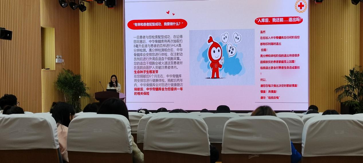 近日,ok138cn太阳集团529星火计划志愿服务团队在校内成功举办了主题为“与爱同行,生命相‘髓’”的科普宣讲活动,讲座旨在向大学生们宣传、普及造血干细胞捐献的相关知识,提高其对“三献”的科学认识及生命健康意识。