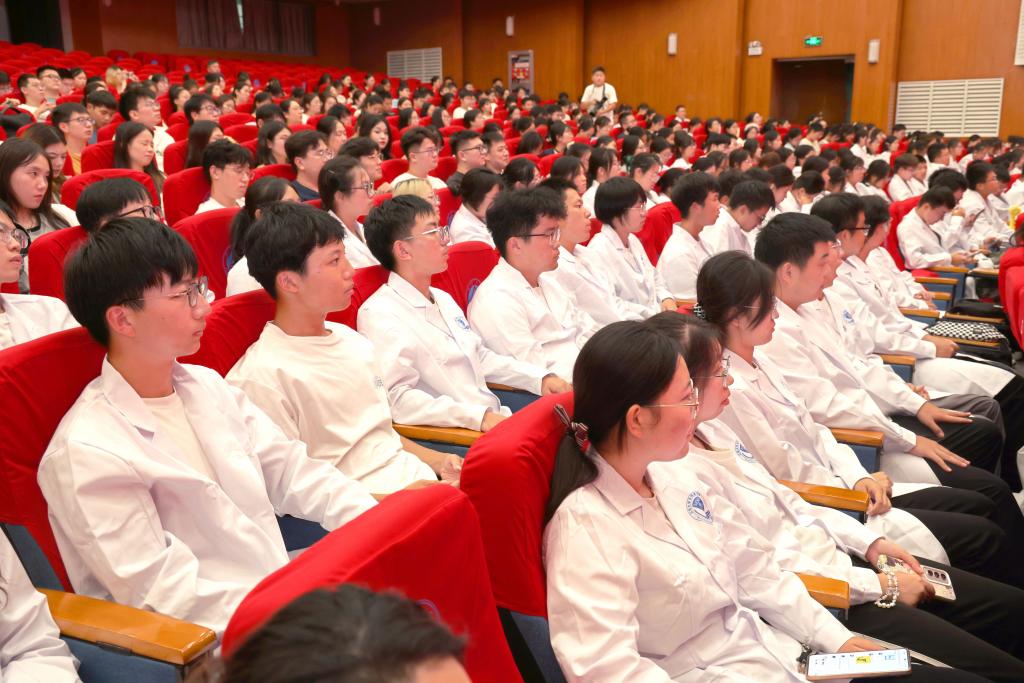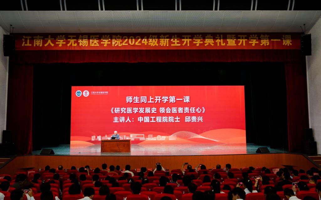 开学典礼之后,邱贵兴院士随即为全体2024级新生和医学院、附属医院的教师带来题为《研究医学发展史 领会医者责任心》的开学第一课。
