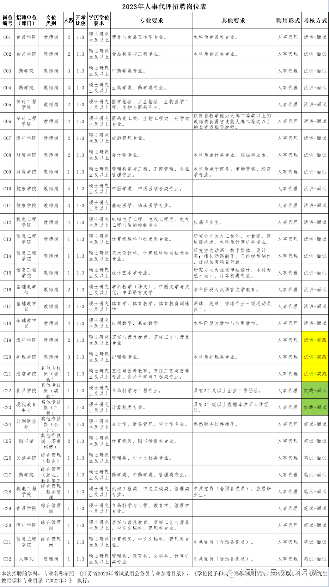 2.岗位编号为C19-C21的岗位采用试讲+实践的方式考核。