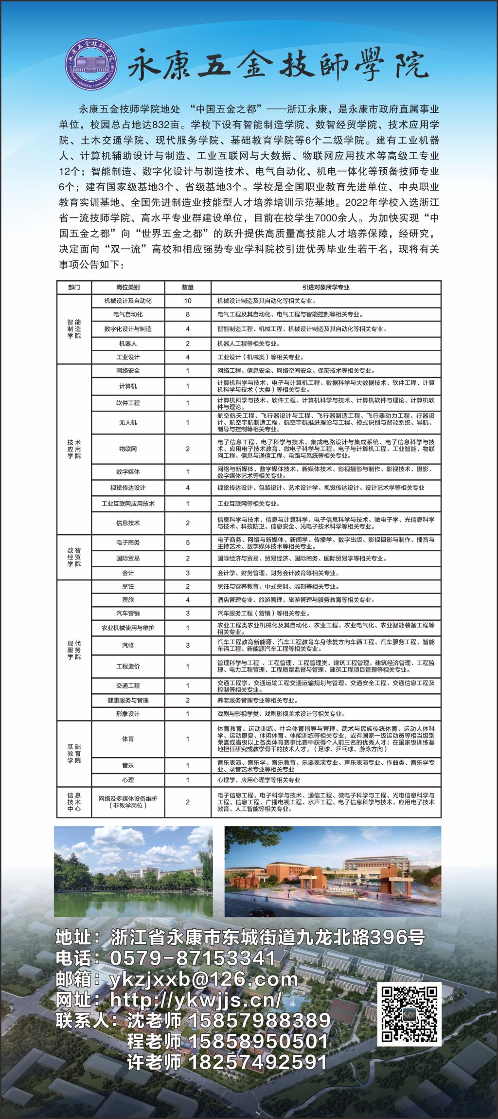 就业【2023】13号 永康五金技师学院2023年人才招聘启事