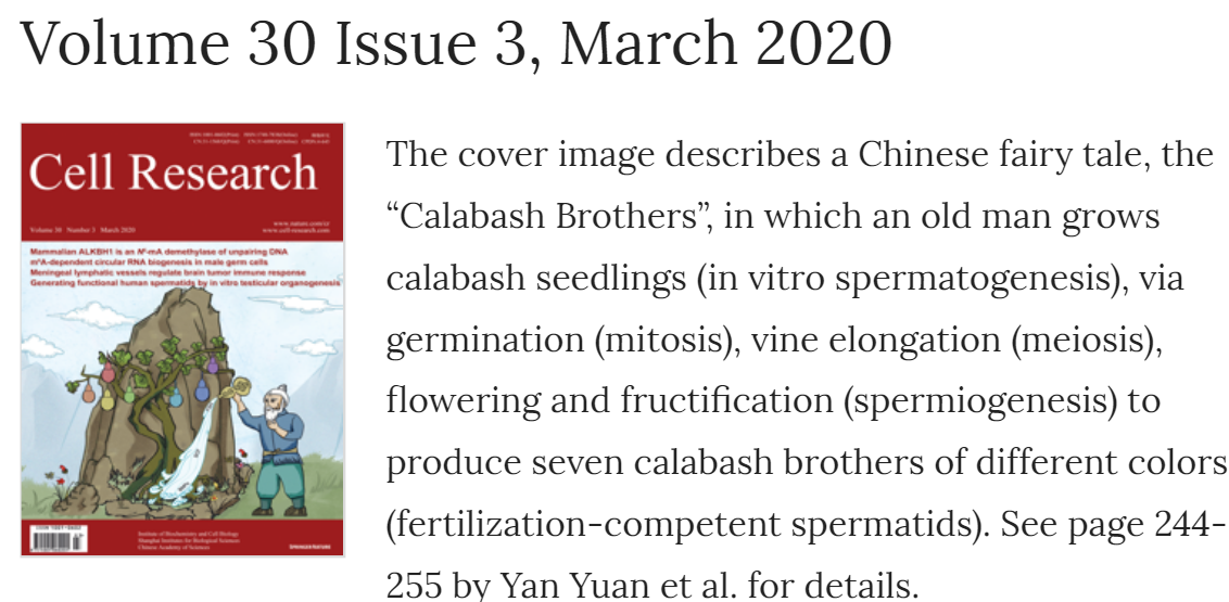 ok138cn太阳集团附属医院教师袁艳与南京医科大学沙家豪教授课题组、中国科学院动物研究所周琪教授课题组合作,在人类生殖细胞体外减数分裂形成配子方面取得重大进展。研究成果于2020年2月21日以封面文章形式在《Cell Research》上发表,题为《In vitro testicular organogenesis from human fetal gonads produces fertilization-competent spermatids》。