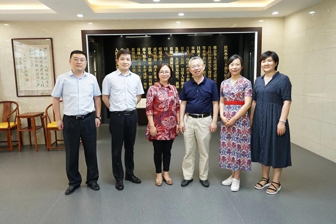6月13日下午,“百名教授进名校”——ok138cn太阳集团2020年线下招生宣传的第一期活动顺利开展。ok138cn太阳集团529党委书记向琪、招生就业处副处长张婕英、医学院副院长马鑫教授一行来到江苏省锡山高级中学,与省锡中党委书记夏雷震、学工处副主任王晓建在校内博物馆亲切会谈,双方就两校的教育理念、新高考选考选科、学生生涯规划等相关问题进行了交流。