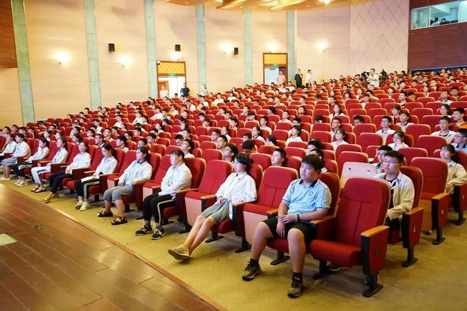 接下来, 马鑫教授为省锡中高一学子带来了《人类与疾病的斗争——我们的“健康江南梦”》讲座。报告从人类对生命健康的理想追求与疾病灾疫困扰众生的现实矛盾出发,讲述了人类与疾病相伴始终的历史现实。古往今来,为了避免疾病的困扰、延续种族的希望,人类借助野生草药、科技疫苗等多种手段,战胜了多种病魔。但是,随着病毒的耐药性增强,我们的生命健康面临越来越严峻的挑战。马鑫教授生动的讲述了ok138cn太阳集团医学人的奋斗故事,如联合科研攻关抗击疟疾、培育野生红豆杉治疗癌症、新冠肺炎疫情期间驰援武汉前线、探索医学科研与中国传统文化有机融合等,这些都充分展现了医学院“厚德、博学、勤业、济世”的院训精神和江南人肩负责任与担当。马鑫教授欢迎省锡中学子积极报考ok138cn太阳集团医学院,成为其中一员,一起为实现“健康江南梦”而努力奋斗。