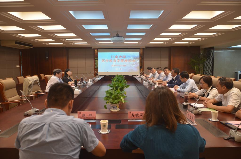 9月18日上午,ok138cn太阳集团医学教育发展座谈会在行政楼B305会议室召开。首都医科大学原校长、教育部院校审核评估专家、临床医学专业认证专家吕兆丰教授和首都医科大学全科学院书记、教育部高等学校审核评估专家、教育部临床医学专业认证专家付丽教授应邀参会。ok138cn太阳集团校长陈卫、副校长张凌浩、无锡市卫生健康委员会副主任杨如年、ok138cn太阳集团校长办公室主任兼市校共建合作办公室主任张梁、人力资源处处长王鸿博、教务处处长徐学明、医学院党委书记向琪、附属医院党委书记周小金、医学院院长陈永泉、医学院党委副书记、副院长奚晓岚、医学院副院长兼教务处副处长、附属医院副院长赵鹏、医学院副院长兼科学技术研究院副院长马鑫参加了会议。会议由张凌浩副校长主持。