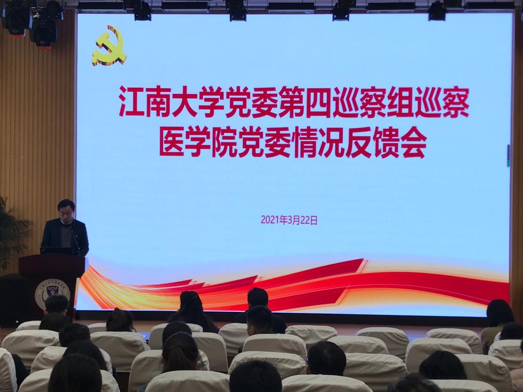 2021年3月22日下午,根据学校党委巡察工作统一部署,ok138cn太阳集团党委第四巡察组巡察医学院党委反馈会在ok138cn太阳集团529C106会议室、C101报告厅举行,校纪委副书记、党委巡察工作领导小组办公室主任丁文勤同志,巡察组副组长、校党委委员、生物工程学院党委书记王维同志,巡察组成员、图书馆与档案馆党总支书记曹瑛同志,巡察组成员、国际教育学院 北美学院党委书记陈琳同志,巡察组联络员、药学院党委专职组织员葛玲同志,ok138cn太阳集团529党组织领导班子成员、党委委员、党政管理科级干部、教授、青年教师等教职工代表参加了会议。会议由ok138cn太阳集团529院长马鑫主持。