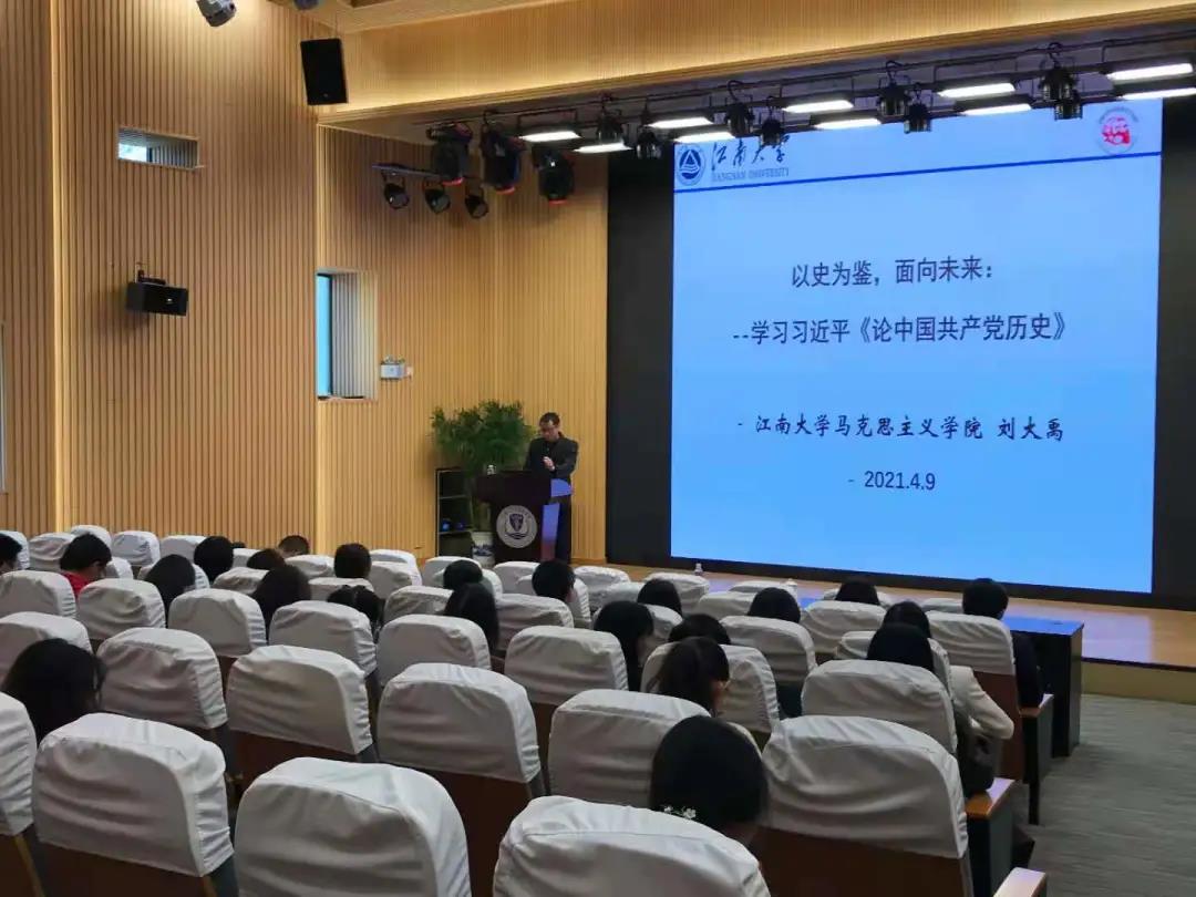 随后,刘大禹教授以“以史为鉴,面向未来:学习习近平《论中国共产党历史》”为题开启了党史学习教育专题讲座。刘大禹教授认为,“历史是最好的教科书”,正因为党敢于总结历史经验,国家才能持续推进革命与改革事业,正因为党善于吸收历史养料,所以国家建设社会主义现代化强国才能指日可待,正因为党能够肩负历史使命,任重前行,中华民族实现伟大的中国梦才能来日可期!