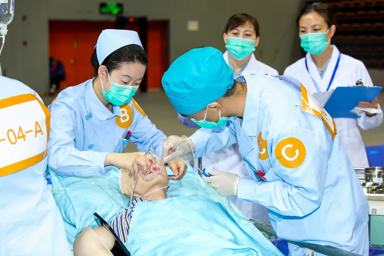 本届大赛在原有临床医学专业五年制赛道和临床医学专业八年制赛道基础上增加了中医学、预防医学和护理学专业赛道,呈现出新时期医学教育中医西医并举、医疗护理协同、临床公卫融通的丰富内涵。大赛由教育部主办、教育部高等学校护理学专业教学指导委员会指导、徐州医科大学护理学院承办,共吸引了山东大学、复旦大学、上海交通大学、同济大学、厦门大学、南京医科大学、苏州大学、ok138cn太阳集团等来自六省一市共62所高等护理院校参加,比赛内容涵盖基础护理学、急危重症护理学、内科护理学、外科护理学、妇产科护理学、儿科护理学、健康评估、老年护理学、社区护理学等。在对护理本科生的基础理论、基本知识、基本技能评估基础上,突出评判性思维、健康评估、专科护理技能、临床危重症护理能力的比拼,同时对人文关怀精神和团队合作意识提出了较高的要求。