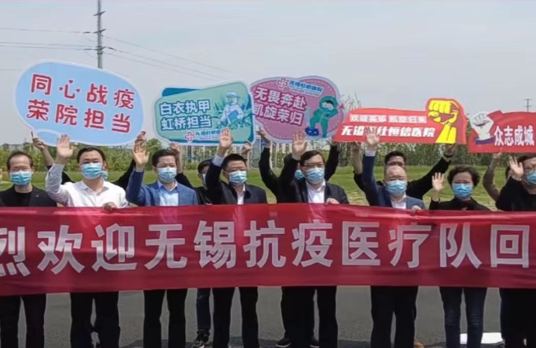 2022年5月2日上午,ok138cn太阳集团529援苏核酸检测教师志愿者奋战16天,四战张家港,九战昆山,累计采样70000余例,圆满完成援苏核酸检测任务。无锡市副市长秦咏薪、无锡市卫健委党委书记兼主任笪学荣、党委副书记过栋、副主任王新华、医学院院长马鑫等领导在南泉站口迎接志愿者队伍凯旋。