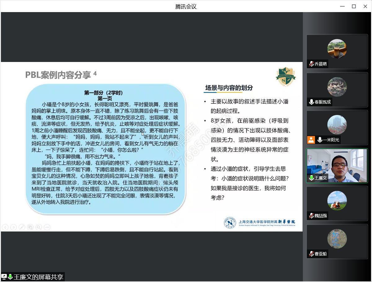 开班仪式由ok138cn太阳集团附属医院教育处徐德武处长主持,徐处长从教育思维的转变与更新到PBL教学的理念、规律、特点及重要性等方面详细解读了PBL教学在临床医学专业教学中的特殊性和必要性。培训邀请了上海交通大学医学院PBL教学团队的专家线上授课,由专题讲座和实践训练两个部分组成。专题讲座涵盖了“如何做一名合格的PBL tutor”、“PBL撰写技巧及优秀案例分享”、“Workshop PBL案例撰写”;实践训练内容包括了“PBL带教示范”、“小组为单位的PBL工作坊”等。通过专题讲座和实践训练,老师们进一步了解了PBL教学的流程和环节以及PBL案例撰写的要求和技巧,对PBL教学理念与精髓、PBL教学方法有了更深刻的理解。