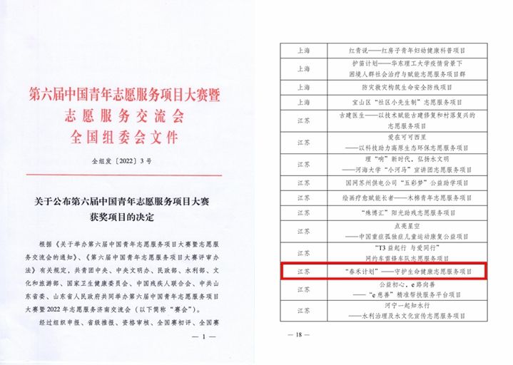 近日,第六届中国青年志愿服务项目大赛落下帷幕。经过组织申报、省级推报、资格审核、全国赛初评、全国赛终评、社会公示等环节,我校医学院“春禾计划”——守护生命健康志愿服务项目斩获国赛银奖,实现我校在全国志愿服务项目竞赛中新的突破。