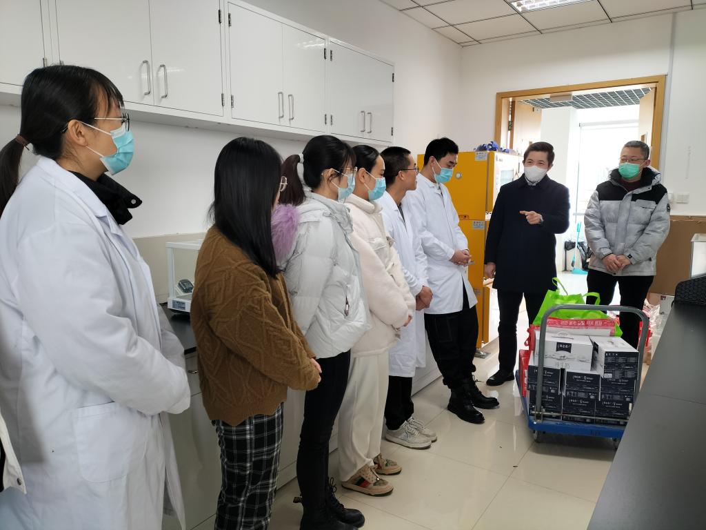马鑫一行来到学院实验室,与留校学生进行了亲切交谈,了解每位同学的留校原因、科研进展以及在校生活情况,并送上新春慰问品,向留校学生致以节日的诚挚问候和新春的美好祝愿。马鑫表示,医学院有优越的科研环境,希望同学们能够追求卓越,向优秀的同学学习,好好利用这段时间追求更多的学术成就;学校有优美的校园环境,希望同学们在科研之余能够欣赏欣赏美景,放松心情,发现生活的美与好;学院还有一批关心大家的老师们,希望同学们遇到任何问题和困难,都要第一时间联系导师或辅导员,老师们会尽最大的努力为同学们提供帮助。他还叮嘱同学们在完成学习任务的同时要做好自我防护,注意人身和财产安全。