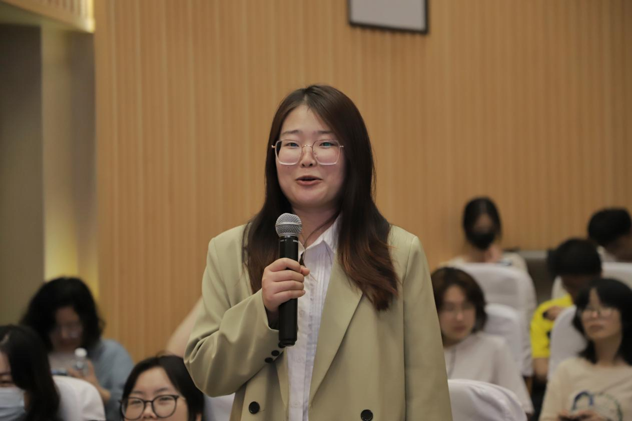 奚晓岚对本次讲座内容进行总结。她对马教授表示感谢,她指出马教授用多个生动案例向大家强调如何积极面对问题,营造良好关系,希望每位学生都能够拥有积极乐观、拼搏向上的心态。