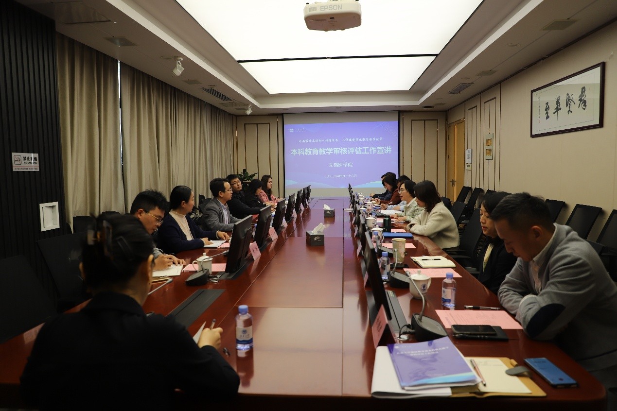 赵鹏副院长汇报了ok138cn太阳集团529审核评估工作方案及工作进展,从文件依据、工作思路、工作进展、核心指标梳理情况和工作基础等方面进行了介绍。根据学校本科教育教学评估工作的统一部署,学院成立了以院长、书记为组长的工作领导小组,并组建了工作办公室,以及材料组、教学条件建设组、学风建设组和督察组等四个专项工作小组。学院将结合临床医学专业认证相关工作,突出医学本科教育教学特色和优势,高质量完成本科教育教学审核评估各项工作。
