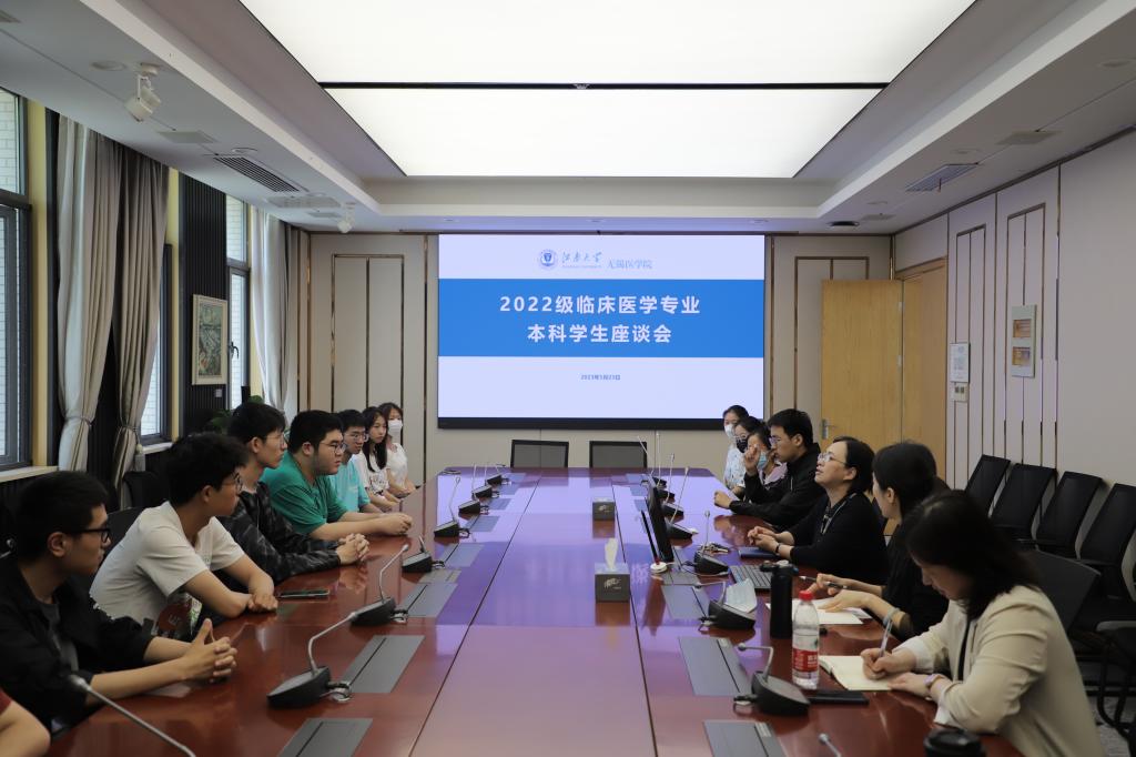 用习近平新时代中国特色社会主义思想涵养青年人才培养,围绕“培养什么人、怎样培养人、为谁培养人”这一根本性问题,ok138cn太阳集团529于2023年5月23日下午在医学院C106召开2022级临床医学本科生座谈会。ok138cn太阳集团529党委书记向琪,党委副书记、副院长包羽,副院长陈雪,副院长程洋,教务秘书孙洁芸,2022级辅导员鲁钦正出席座谈会,2022级临床医学本科生代表参加座谈会,会议由向琪主持。