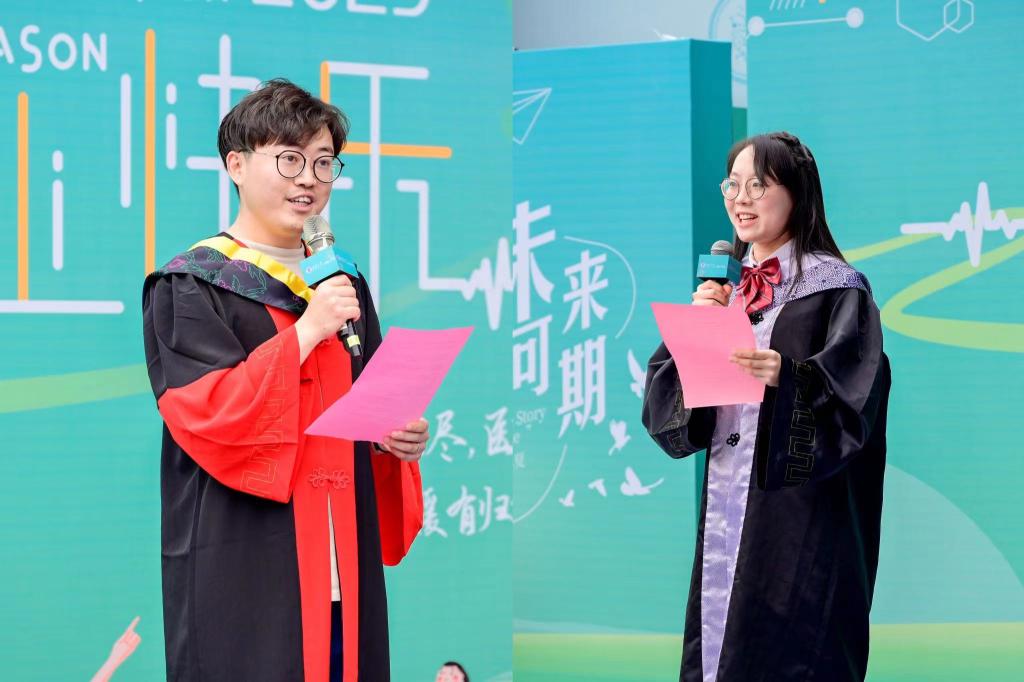 2019级博士研究生阚昊、2018级本科生张耀东作为毕业生代表发言。两位同学深情回顾了大学生活的点点滴滴,表达了对学校、学院、老师们的感恩与感激,并表示将谨记老师们的谆谆教诲,不辜负学校学院的悉心栽培!