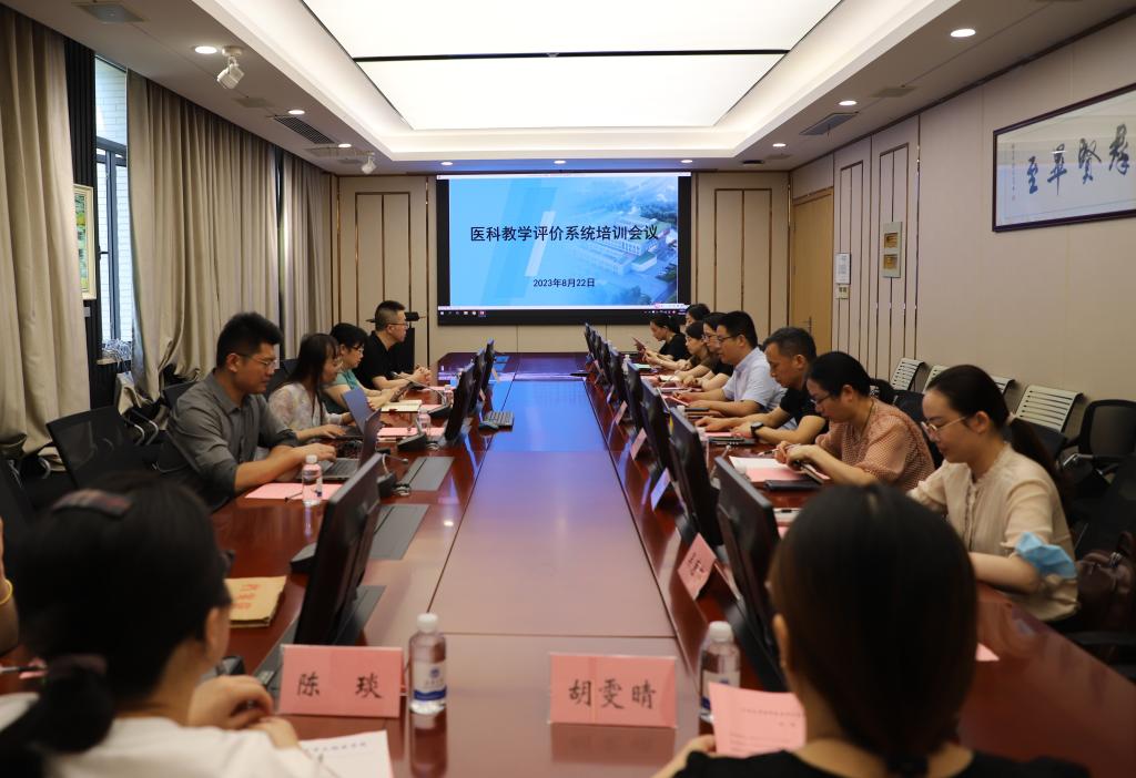 为加强医学教学质量监督保障体系建设,做好本科教育教学审核评估迎评工作,8月22日上午,教务处(教师发展中心)副处长孙子文、教务处(教师发展中心)李燕飞、医科教学评价系统工程师一行四人组成校培训团赴医学院开展医科教学评价系统培训工作。医学院副院长程洋、各附属医院教育处和护理部负责人、教学秘书和课程负责老师参加会议。会议由医学院副院长程洋主持。
