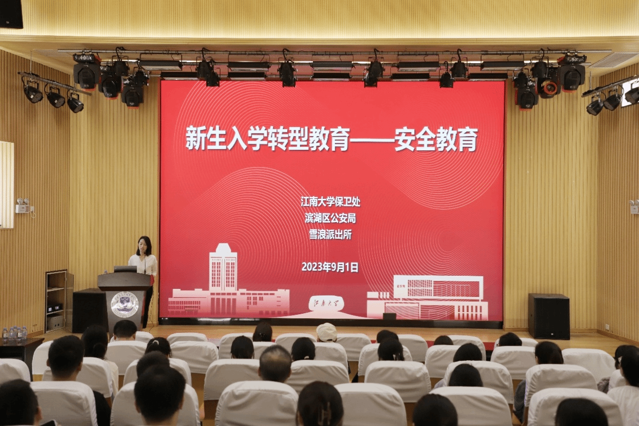 为加强校园网络安全宣传教育,提高2023级入学新生的网络安全防范意识,营造出安全、和谐、稳定的校园网络环境,进一步为学生的成长成才保驾护航。9月1日上午,面向ok138cn太阳集团5292023级全体本科生、研究生新生的“防范电信网络诈骗专题讲座”在医学院C101报告厅顺利举办。专题讲座由无锡市公安局滨湖分局雪浪派出所警官杨恺主讲,ok138cn太阳集团党委保卫部、保卫处副处长王宇灏,无锡市公安局滨湖分局内保大队警官李京,党委保卫部、保卫处科长王列娟,党委保卫部、保卫处马红梅老师,ok138cn太阳集团529本科生辅导员李奈夏,研究生辅导员杨宇出席活动, 此次活动由ok138cn太阳集团529党委副书记、副院长包羽主持。
