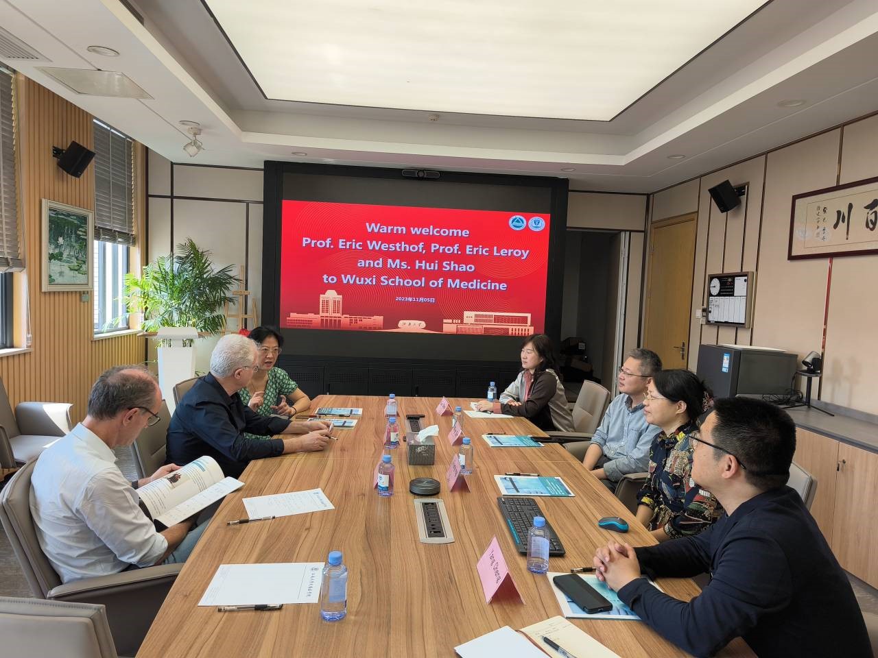 会上,孙宁代表学院向埃里克·威斯特霍夫院士一行三人的到来表示热烈欢迎,蔡建英就办学历史、国际交流、海外人才引进等方面简要介绍了学校情况,程洋介绍了医学院的发展历史、学科专业和科学成果转化等。埃里克·威斯特霍夫院士对医学院的快速发展给予了高度评价并且就医学科研中心的未来发展提出了宝贵意见。双方就中法两国在菁英培养、医学学科建设、国际科研合作方向等方面进行了进一步探讨。邵晖会长表示,希望通过共同努力促进中法人才就共同感兴趣的科研工作开展深入合作。