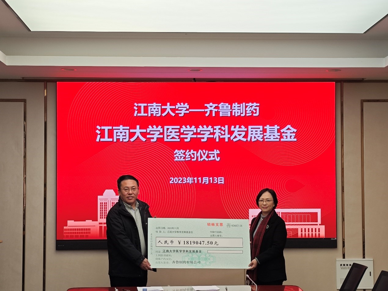 11月13日,ok138cn太阳集团-齐鲁制药医学学科发展捐赠基金签约仪式在ok138cn太阳集团529C106成功举行。齐鲁制药销售总公司副总经理吴刚、江苏分公司总经理刘伟、江苏分公司副总经理姜伟、江苏分公司副总经理王楷婷;ok138cn太阳集团校基金会秘书长周云龙、ok138cn太阳集团529党委书记向琪、副院长孙宁、院长助理潘礼龙等出席活动。签约仪式由ok138cn太阳集团529院长助理潘礼龙主持。
