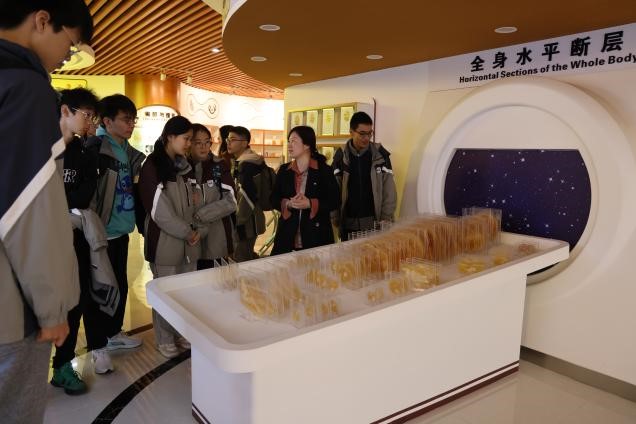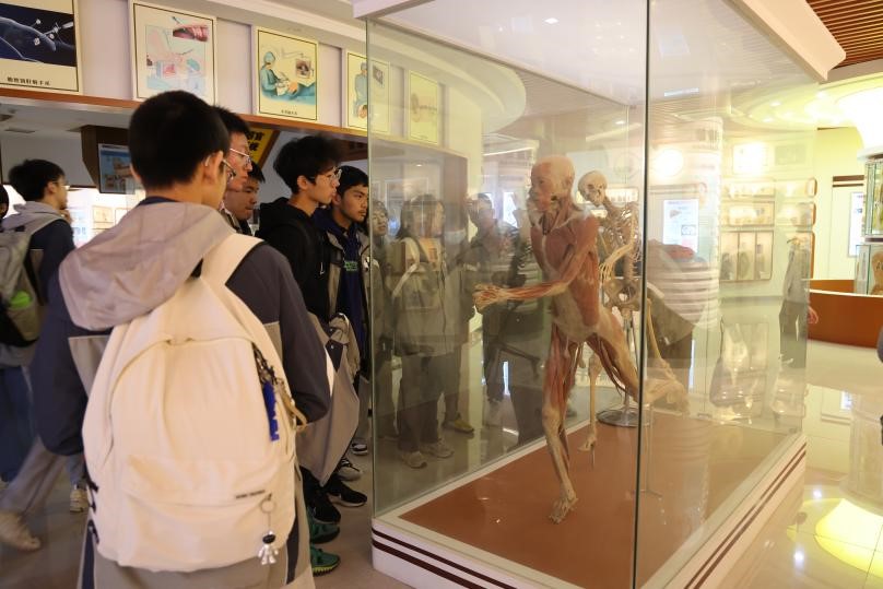 活动最后,来访师生走进医学院人体科学馆进行参观学习,医学院教师徐白为来访师生展示了人体组成、人体标本制作方法等医学专业知识和技术,并详细讲解了“危险三角区”等展品背后的医学原理,激发来访学子对人体奥秘探索及医学职业的兴趣,引领同学们珍惜生命、爱护生命、尊重生命、敬畏生命。