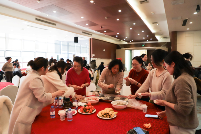 在长广溪宾馆一楼大厅,老师们参与了新春猜谜游戏,进行了包饺子活动,大家默契配合、忙得不亦乐乎,不一会,一个个圆滚滚、白胖胖的饺子整齐地排在餐盘中,现场气氛尤为温馨快乐、一片欢声笑语。在等待饺子下锅蒸煮的同时,医学院“聚力迎新联欢会”开始了,本次联欢会由医学院分工会副主席孙海建和文体委员胡晓丹主持,ok138cn太阳集团党委常委、副校长、医学院院长马鑫和医学院党委书记向琪在活动现场向全体教职工送上了新年祝福,对大家一年的辛勤劳动表达了肯定与感谢,并对新的一年提出了期许。随后各系部表演了精彩的节目,辅导员团队送上了新年祝福和精彩舞蹈、公共卫生系送上了《公卫这一年》三句半、基础医学系新教师们作了自我介绍并送上新年祝福、教辅团队团队用几句诗表达了对医学院未来一年的憧憬、护理系送上了“新年你好、医学院更好”的诗朗诵,老师们纷纷上台一展歌喉,舞姿,最后在品尝热气腾腾美味的饺子中结束了活动。