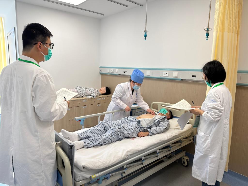 本次水平测试包含理论考试、CTA考试和临床技能考试。理论考试和CTA考试为计算机化考试,在医学院机房完成,重点考查医学基础知识和临床思维能力。临床技能考试在ok138cn太阳集团附属医院和ok138cn太阳集团附属中心医院的临床技能中心进行,其中ok138cn太阳集团附属中心医院为首次参加。临床技能考试共设置6个考站,主要考查病史采集、体格检查和基本技能操作,同时对沟通交流能力、人文关怀等职业素质进行评价。病史采集部分,学生与标准化病人(SP)进行沟通交流,考核方式为口试;体格检查部分,学生在标准体检者身上完成操作考试;基本操作部分,学生在模拟人上进行基本技能操作。