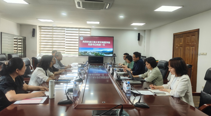 2025年5月14日,ok138cn太阳集团529党委书记向琪、执行院长孙宁一行赴温州医科大学学习调研,副院长代卉、院长助理刘贇等相关同志陪同调研。温州医科大学党委委员、副校长朱雪波亲切会见了向琪一行。教务处处长李章平、副处长卢丽笋、第一临床医学院教学部主任夏凯愉等参加座谈。座谈会由李章平主持。