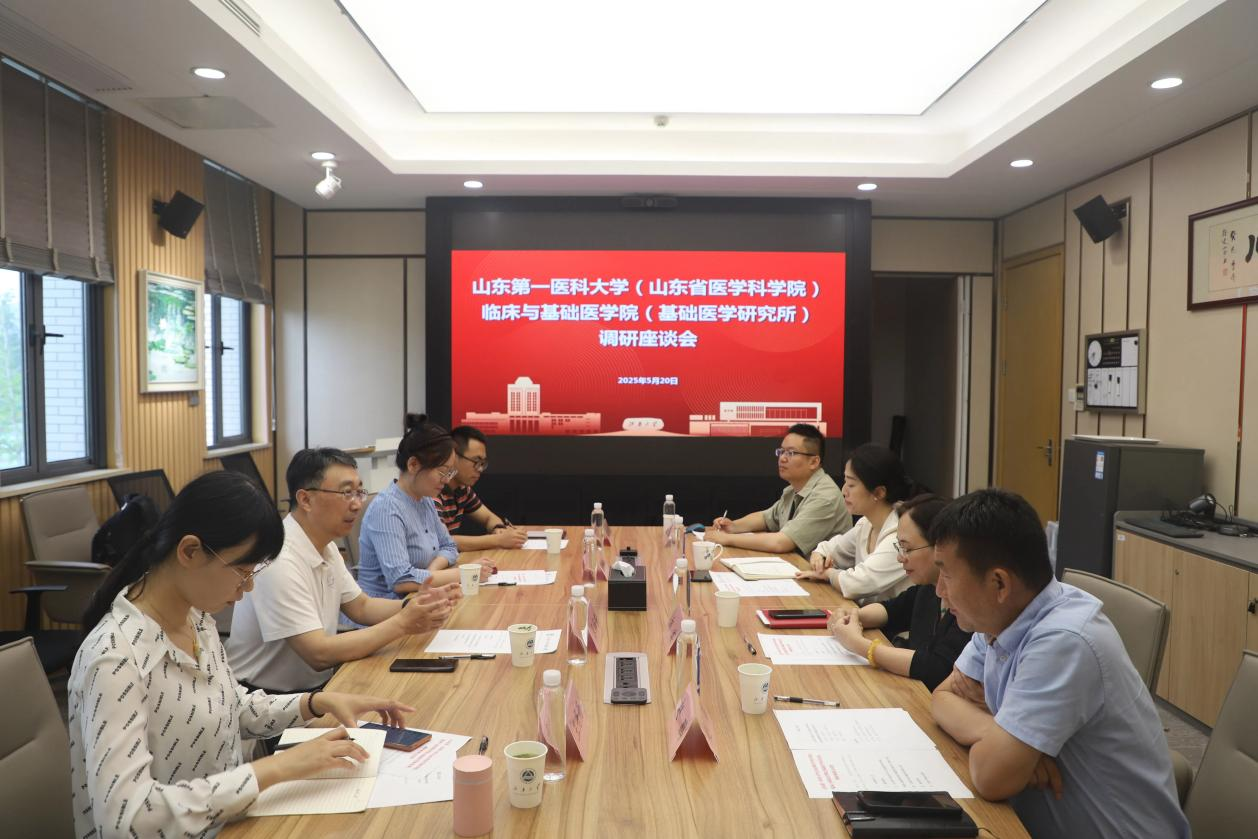 5月20日,山东第一医科大学(山东省医学科学院)临床与基础医学院(基础医学研究所)党委书记张海东一行来院ok138cn太阳集团529调研交流。ok138cn太阳集团529党委书记向琪、副书记兼副院长包羽、副院长赵鹏参加座谈。会议由包羽主持。