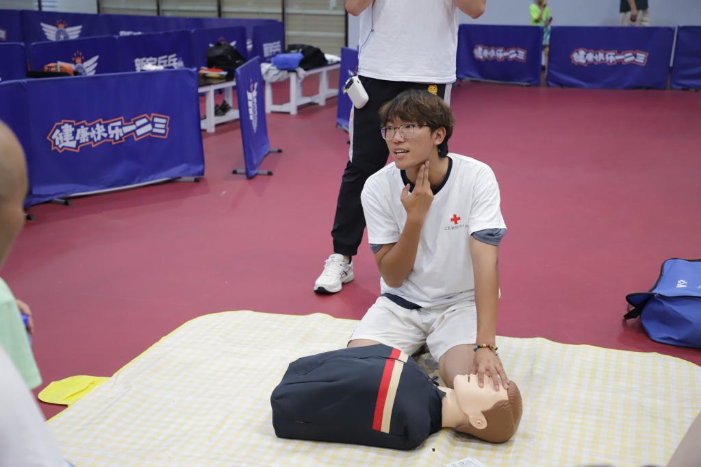 重点人群针对科普,场景划分精准施策。运动急救覆盖全域,健康守护深入人心。团队走进乐刻健身、无锡市体育中心全民健身中心等健身场所,深入德智健将跆拳道馆、浩天体育游泳池、新宇乒乓等运动场馆,前往雪浪社区、石塘社区、震泽社区等社区街道,精准面向健身爱好者、青少年及中老年群体开展急救科普与实操教学。内容聚焦肌肉拉伤、关节扭伤、训练中暑等高发运动损伤的应急处理,涵盖止血包扎、损伤固定、心肺复苏等技能,并结合跌倒处理、中暑应对、卒中预防等日常健康主题。活动注重实用性与互动性,通过播放案例视频、模拟演练、面对面指导与健康检测等环节,帮助参与者掌握关键要领,增强自救互救与健康管理能力,让运动安全理念与应急救护技能走进大众日常,护航生命健康。