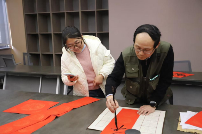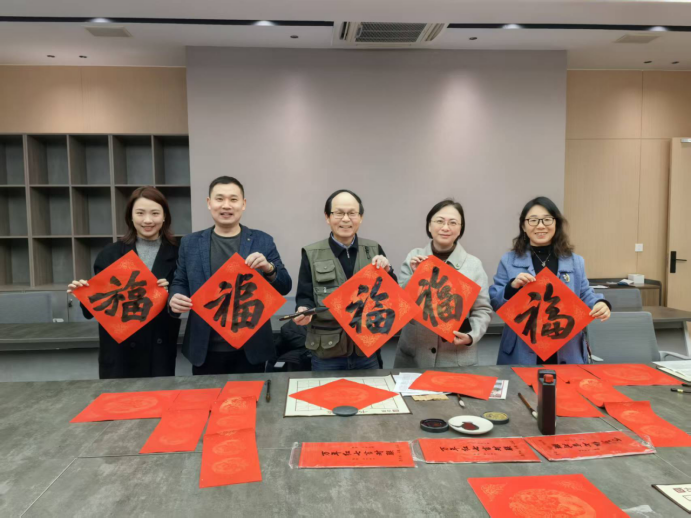 随后的“墨香迎福”写春联送福字环节,现场邀请了ok138cn太阳集团宣传部胡奕老师和有书法功底的同学担任“送福使者”,研磨挥毫,笔走龙蛇间,一幅幅寓意吉祥的春联、一个个饱满灵动的“福”字跃然纸上,老师们或驻足围观,或亲自提笔尝试,墨香氤氲中,大家互相切磋笔法、分享年味,一张张红纸承载着真挚的祝福,传递着同事间的深厚情谊。