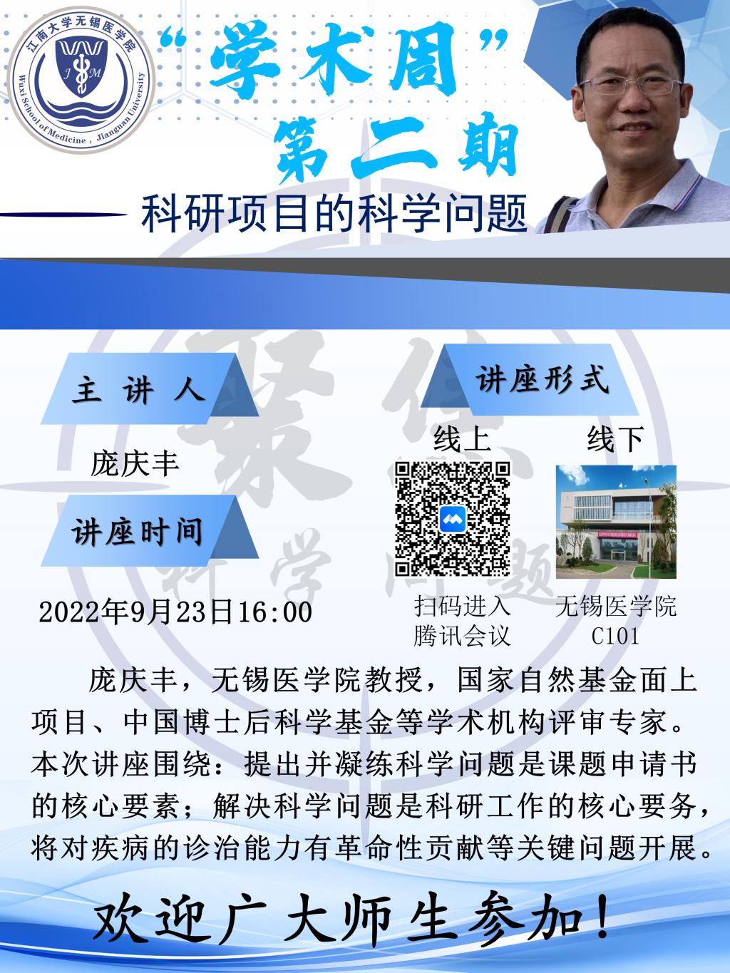 9月23日ok138cn太阳集团529前沿学术论坛 第三讲——庞庆丰:科研项目中的科学问题