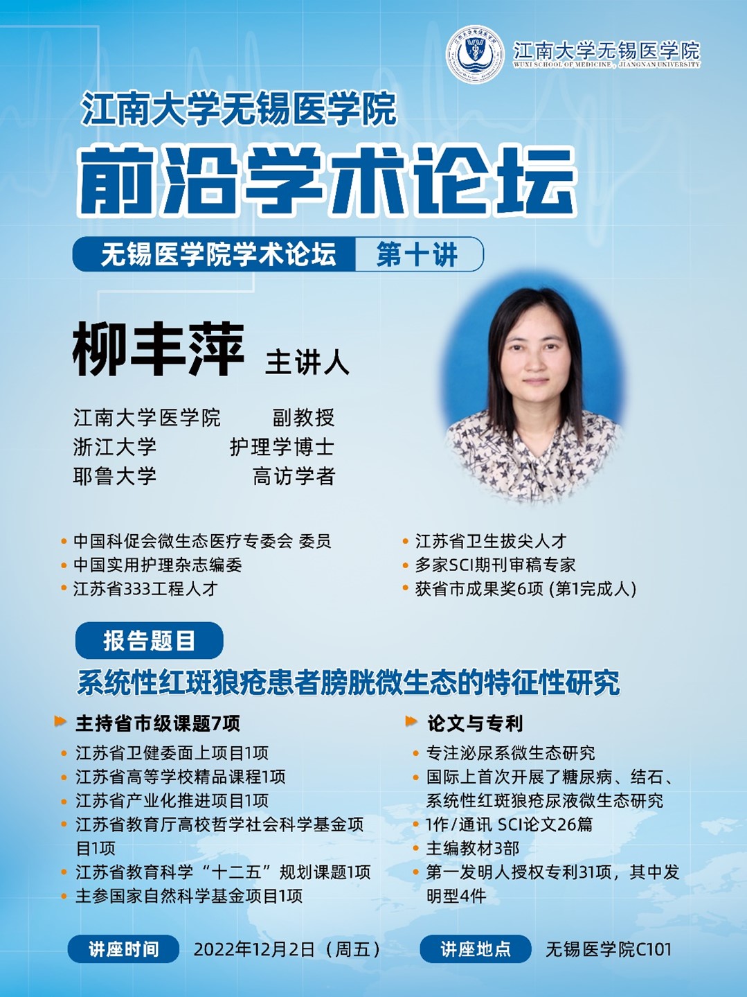 12月2日ok138cn太阳集团529前沿学术论坛 第十讲 柳丰萍——系统性红斑狼疮患者膀胱微生态的特征性研究