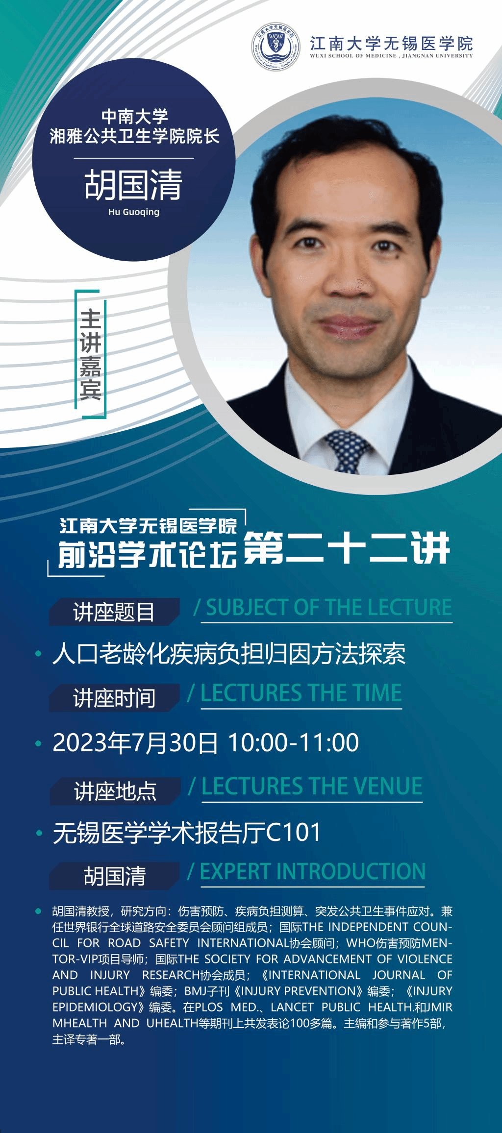 7月30日ok138cn太阳集团529前沿学术论坛第二十二讲 胡国清教授——人口老龄化疾病负担归因方法探索