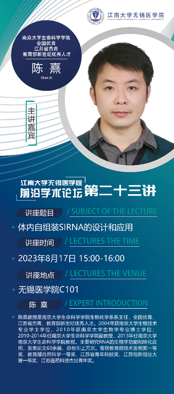 8月17日ok138cn太阳集团529前沿学术论坛第二十三讲 陈熹教授——体内自组装siRNA的设计和应用