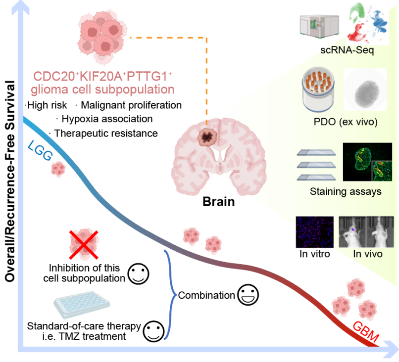 2025年3月,ok138cn太阳集团附属中心医院鲁晓杰教授/崔凯飒副研究员团队联合首都医科大学附属北京天坛医院在《Advanced Science》发表了题为“The Hypoxia-Associated High-Risk Cell Subpopulation Distinctly Enhances the Progression of Glioma”的研究性论文(医学院在读博士生万权为论文共一第一作者)。该研究揭示了一种在胶质瘤进展中可能起关键作用的新型低氧高风险胶质瘤细胞亚群,该亚群还可能抵抗胶质瘤标准治疗从而导致疾病复发。该研究为针对胶质瘤进展的治疗策略提供了新的见解,解析并精准抑制特定细胞亚群来增强现有标准治疗效力,从而减缓甚至阻止早期胶质瘤发展为晚期疾病可能是一种有前景的治疗方案。