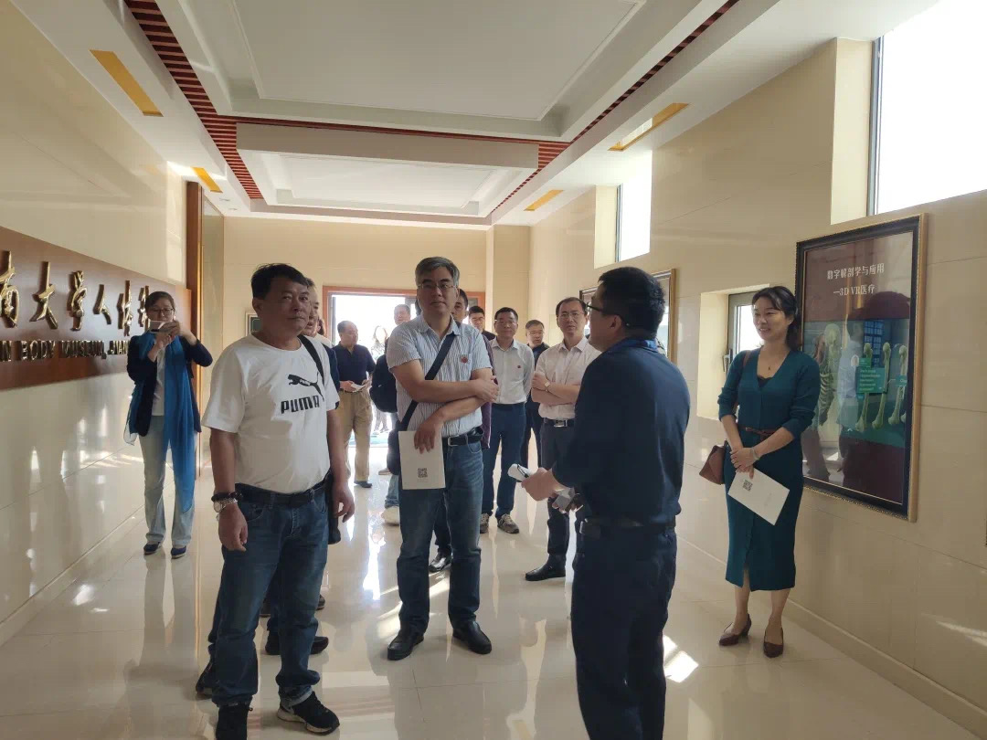 奚书记首先向校友们介绍了学院的发展建设、师资力量、科研团队以及学生规模等情况,并且表达了学院对他们的关心。随后,付主任介绍了医学院大楼建设整体情况,并带校友们参观了基础实验室、护理技能教学实验室、模拟病房以及人体科学馆。校友们望着眼前崭新的医学大楼,回味着过去的点点滴滴,畅谈自己当年在学校求学的各种趣事,纵使皱纹爬上了额头,但是不变的还是那颗年轻的心。大家感慨医学院的一路成长壮大,连连称赞。在参观解剖学实验室时,他们遇见国庆假期仍在实验室里做着实验的同学们,对他们的钻研精神表示认可,并鼓励他们要用坚实的专业知识和深厚的社会责任感在求学道路上恪守医学精神。
