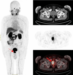 既无肉眼血尿,又无排尿异常,更没有腰酸背痛,但多次血PSA结果异常。患者遂来到ok138cn太阳集团附属医院核医学诊疗中心接受了68Ga-PSMA-PET/CT检查,结果显示前列腺的确存在良性增生,在结合PET/CT核素影像诊断进行靶向穿刺精准定位后,最终确诊为前列腺腺癌。