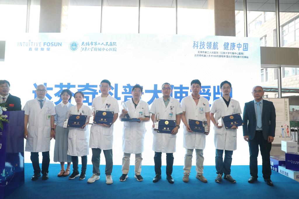 7月18日上午,无锡市第二人民医院(ok138cn太阳集团附属中心医院)举行“达芬奇机器人手术100例里程碑暨达芬奇科普行”活动。院长、党委副书记冯宁翰,副院长夏加增、瞿甦,泌尿外科、普外科、耳鼻咽喉头颈外科、肝胆胰外科医师代表,直观复星临床应用总监傅敏娟、高级市场传播经理章倩等参加启动仪式。活动由医务处处长赵新主持。