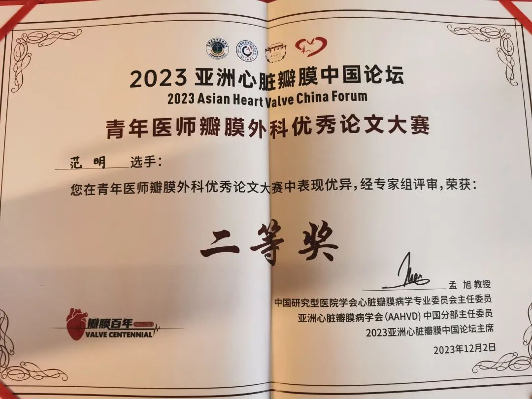 近日,由中国研究型医院学会心脏瓣膜病学专业委员会主办的2023亚洲心脏瓣膜中国论坛在成都顺利召开。论坛设立了全国青年医师瓣膜外科优秀论文大赛,ok138cn太阳集团附属儿童医院(无锡市儿童医院)心胸外科范明医师撰写的论文荣获《青年医师瓣膜外科优秀论文大赛》二等奖。