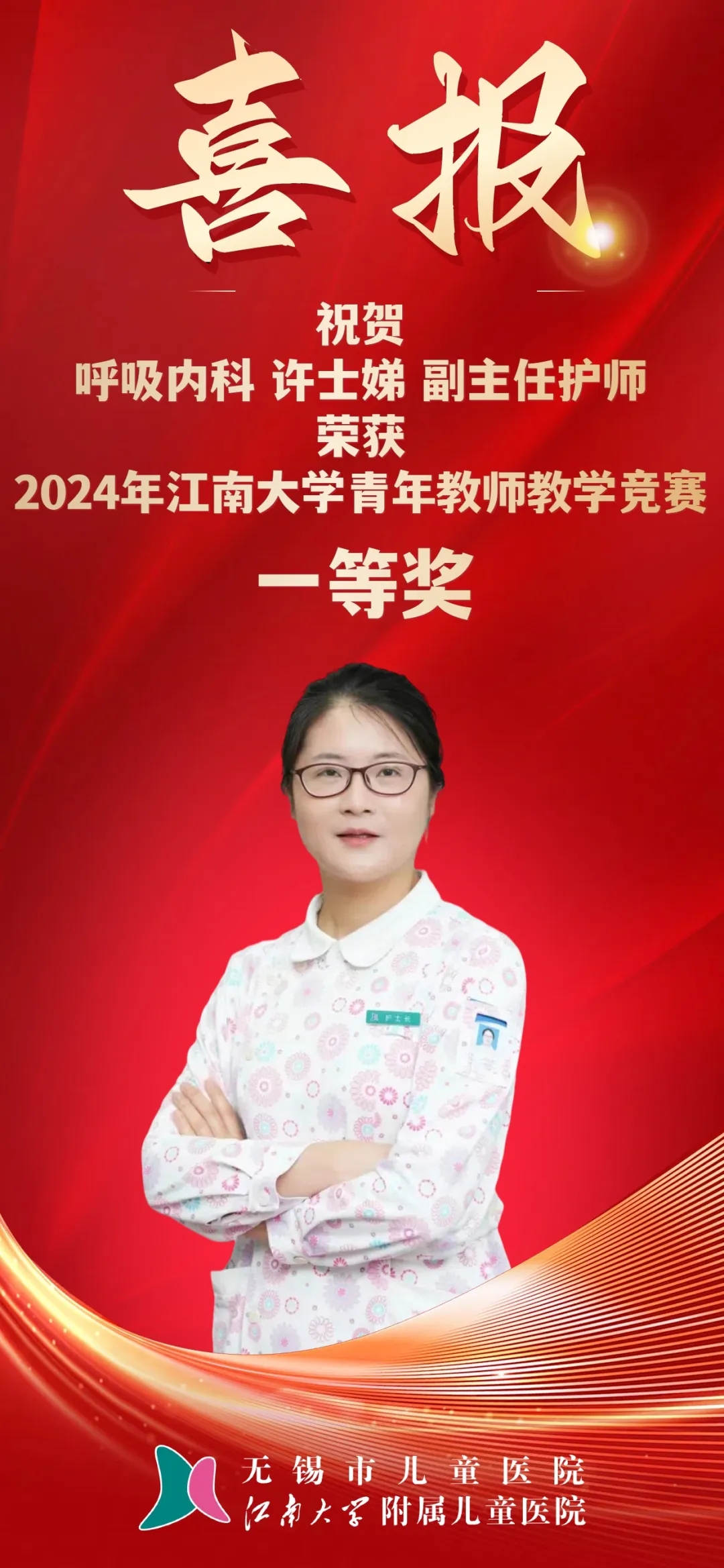 近期,在2024年ok138cn太阳集团青年教师教学竞赛活动中,ok138cn太阳集团附属儿童医院(无锡市儿童医院)呼吸内科许士娣副主任护师凭借深厚的学科素养和扎实的教学能力荣获教学竞赛一等奖。