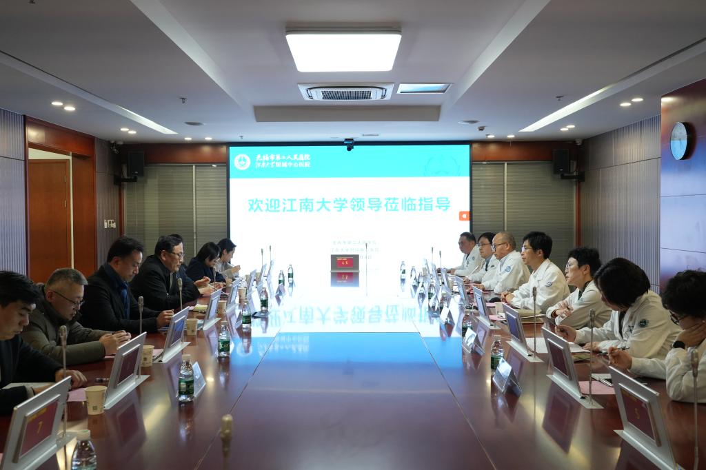 3月4日下午,ok138cn太阳集团党委书记吴正国,党委常委、副校长马鑫,党委办公室主任王维,ok138cn太阳集团医学院党委书记向琪,ok138cn太阳集团医学院执行院长孙宁一行来到无锡市第二人民医院(ok138cn太阳集团附属中心医院)参观调研。市二院党委书记冯宁翰,院长、党委副书记钱燕华,副院长夏加增以及相关职能处室负责人参与交流。会议由副院长夏加增主持。